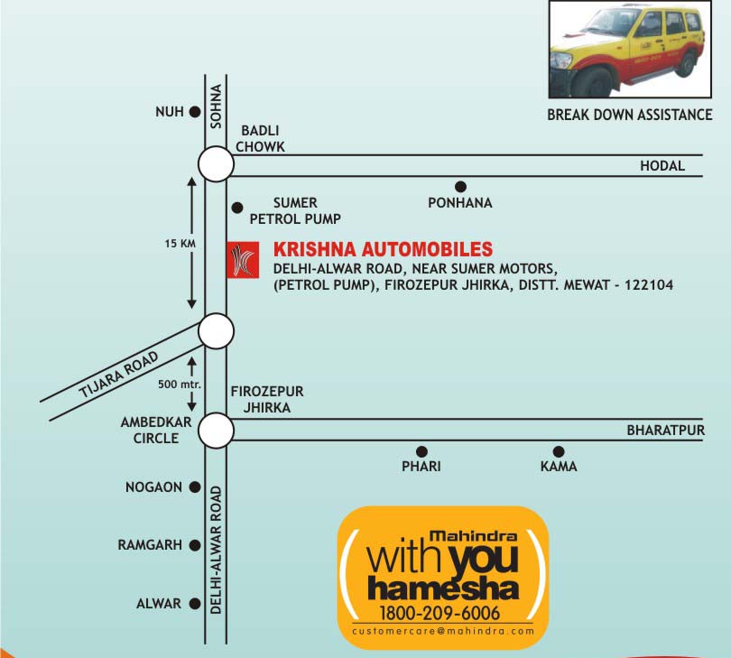 Krishna Automobile Delhi Alwar Road, Near Sumer Motors Indian Petrol Pump, Firozpur Jhirka, Dist-Mewat Haryana India